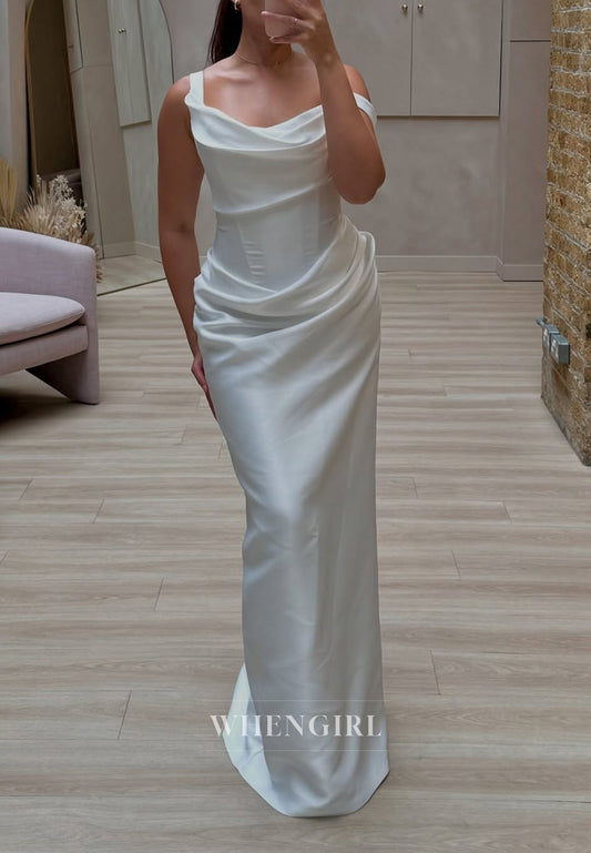 Simple Off Shoulder Sleeveless Sweep Train Sheath Wedding Dress