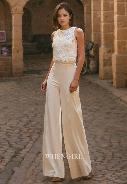 Jumpsuit Strapless Sleeveless Satin Wedding Dress with Lace Jacket
