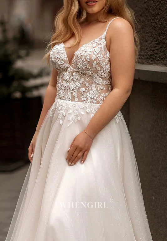 A-line Spaghetti Straps Lace Appliques Simple Wedding Dress