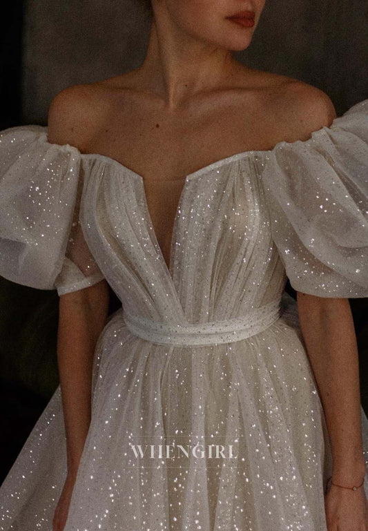 Mermaid Off the Shoulder Sequins Wedding Dresses