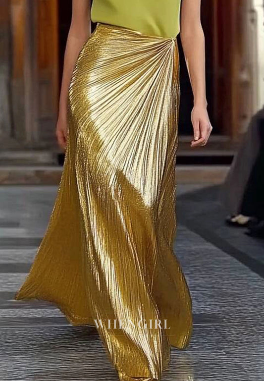 Striking A-Line Spaghetti Straps Side Slit Pleats Glitter Appliques Party Formal Gown with Beads