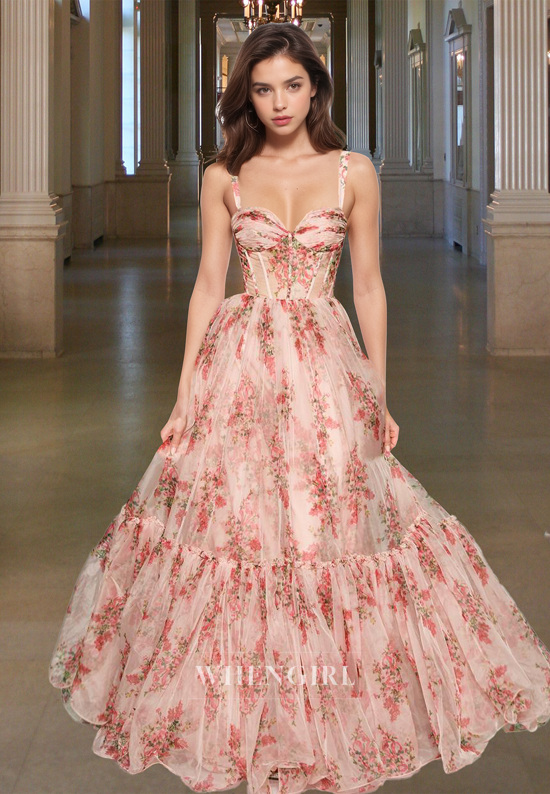 Vintage A-Line Sweetheart Straps Pleated Lace Long Evening Party Dress with Appliques