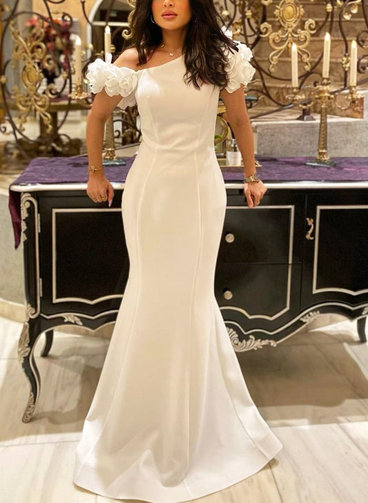 Trumpet/Mermaid One-Shoulder Elastic Satin Evening Dresses With Flower(s)Trumpet/Mermaid One-Shoulder Elastic Satin Evening Dresses With Flower(s)Trumpet/Mermaid One-Shoulder Elastic Satin Evening Dresses With Flower(s)