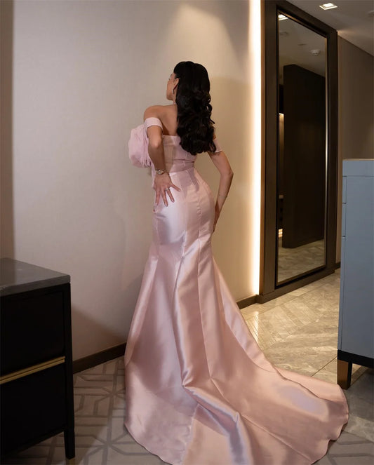 Bella Customized Pink Puff Sleeve Strapless Mermaid robes de soirée Chiffon Side Slit Party Dresses Floor-Length Prom Dress 2025