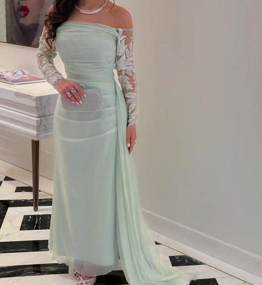 Aenyrst Light Green Prom Gown Women Beaded Off Shoulder Party Evening Dress Ankle Length Formal Occasion Dresses 2025 customized