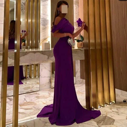 One Shoulder Purple Prom Dresses customized Train Mermaid Evening Dresses Long Satin Party Gown For Women