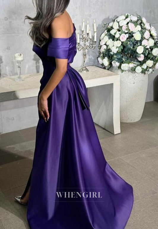 Sheath/Column Off-The-Shoulder Sleeveless Satin Evening Dresses With Bow(s)