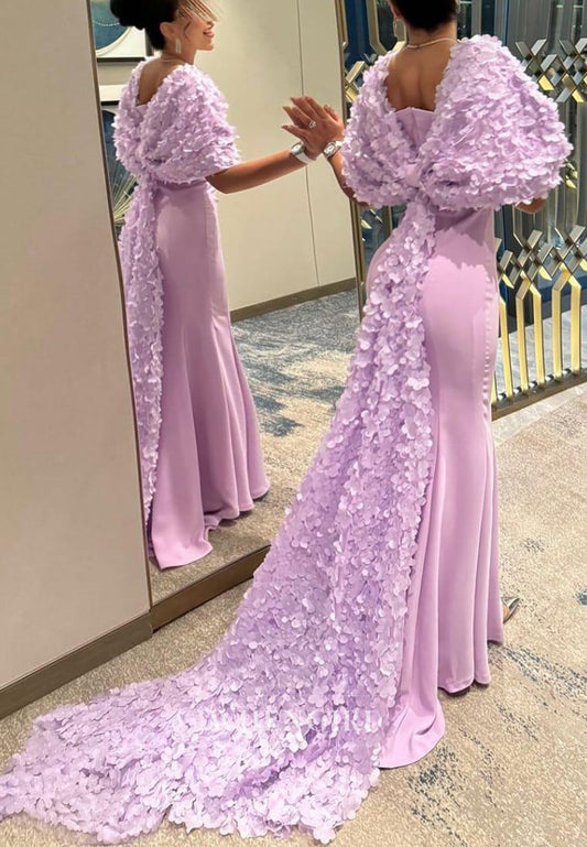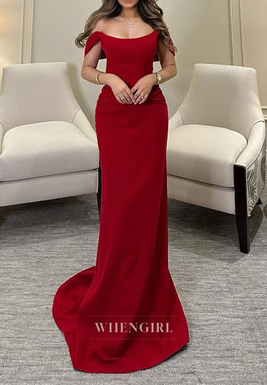Chic Off Shoulder Flowers Sheath Long Formal Evening Dress with Train