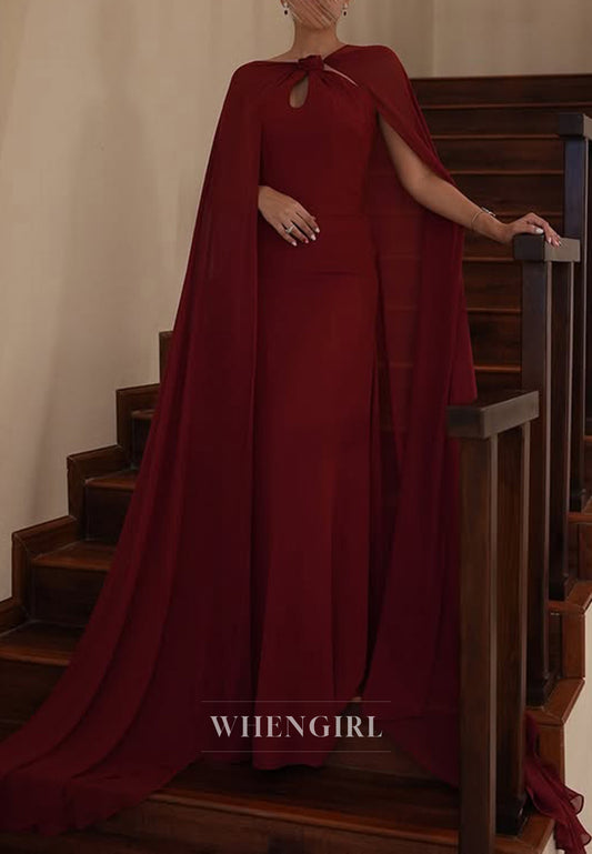 Chic High Neck Bell Sleeves Pleats Red Mermaid Formal Evening Dress