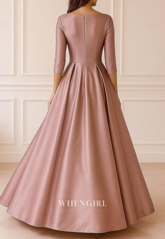 A-Line Bateau Neck Long Sleeves Side Slit Mother of the Bride Dress