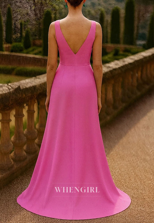 Fuchsia V Neck Sleeveless Flowers A-Line Mother of the Bride Dress