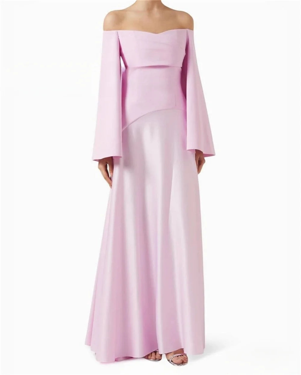 slim Taffeta Prom Dresses Modest A-line vestidos de noche Customized Long Sleeves Off the Shoulder Formal Evening 2024
