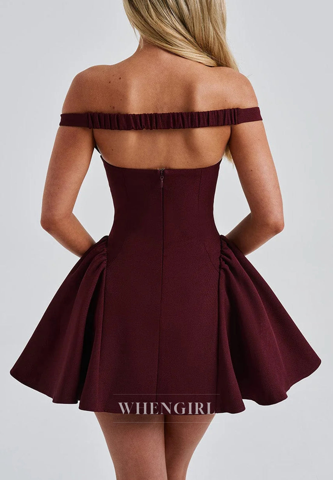 Dance the night away in this playful Burgundy Off Shoulder Homecoming Dress! Its flattering V-neck and sleeveless design highlight your shoulders, while the flowing A-line skirt adds a fun, flirty vibe. Perfect for making unforgettable memories with style and ease.