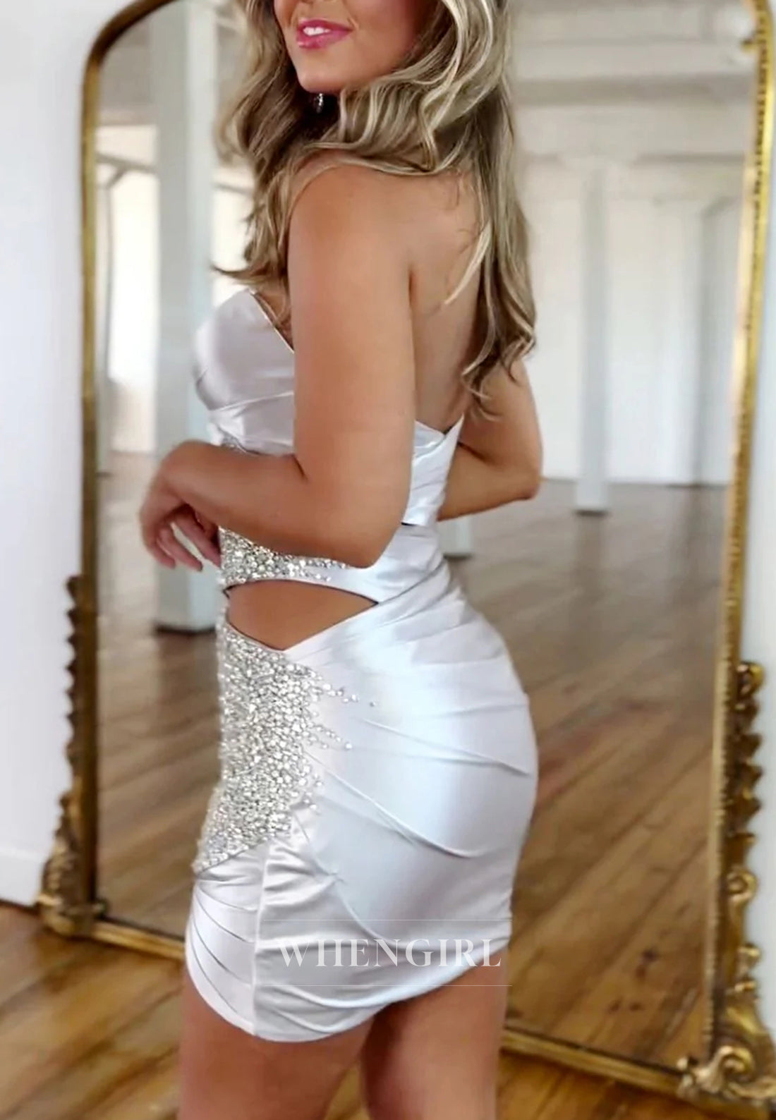 Silver Sweetheart Sleeveless Beaded Cut Out Strapless Short Homecoming Dress