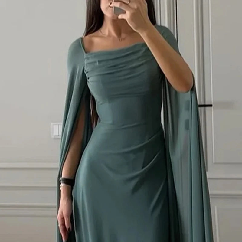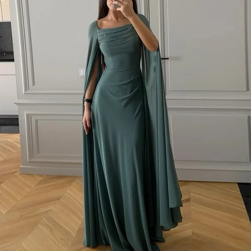 Unique Scoop Bell Sleeves Long Maix Dress Long Sleeves Formal Evening Dress