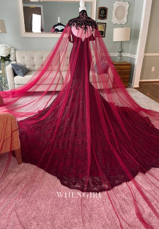 Mermaid Sleeveless Sweetheart Pleated Formal Dress Evening Gown with Cape
