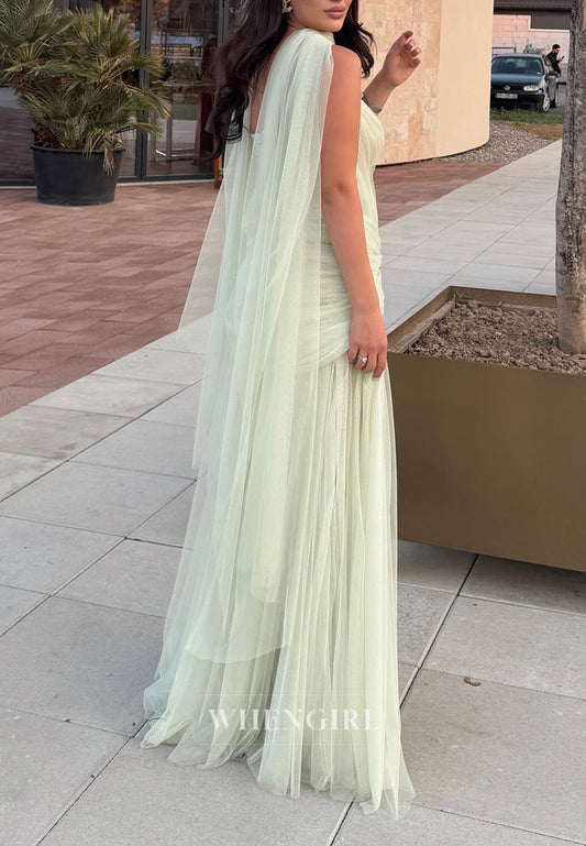 Mermaid One Shoulder Sleeveless Ruched Long Evening Gown