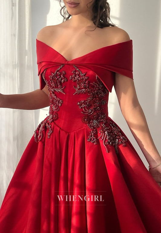 Lilac Off Shoulder Beaded A-Line Stunning Prom Dress
