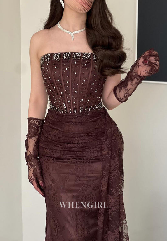Tube Top Strapless Lace Floor Length Sheath Evening Dress