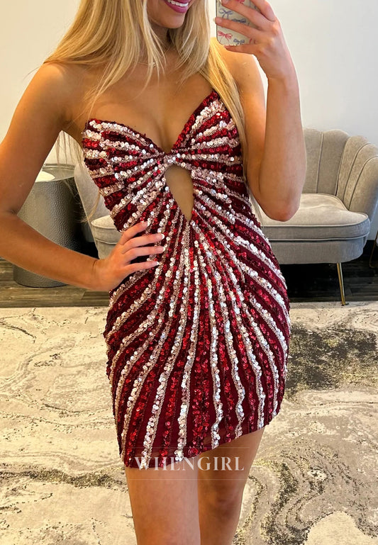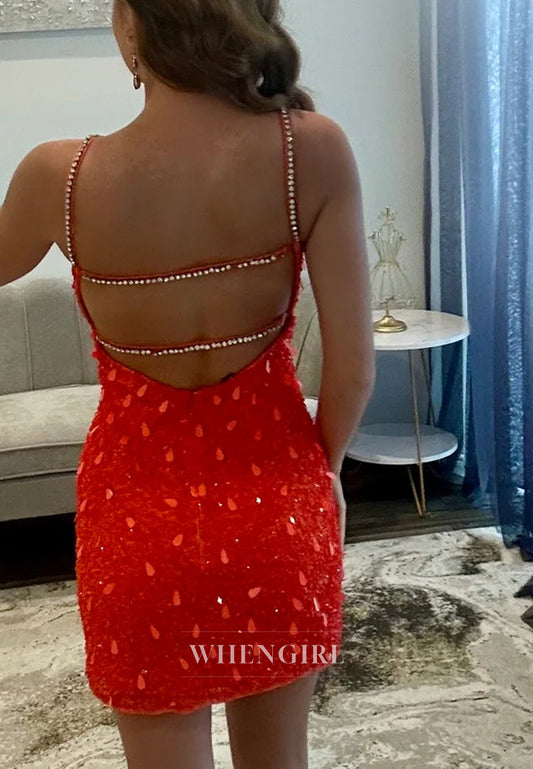 V Neck Cut Out Sleeveless Sequins Sheath Short Homecoming Dress