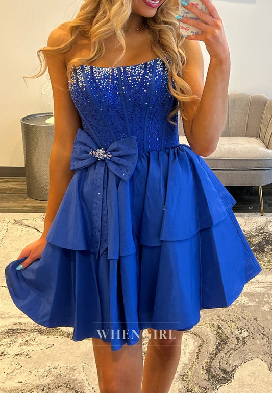 Royal Blue A-Line Sleeveless Bowknot Beaded Back Zipper Short Homecoming Dress
