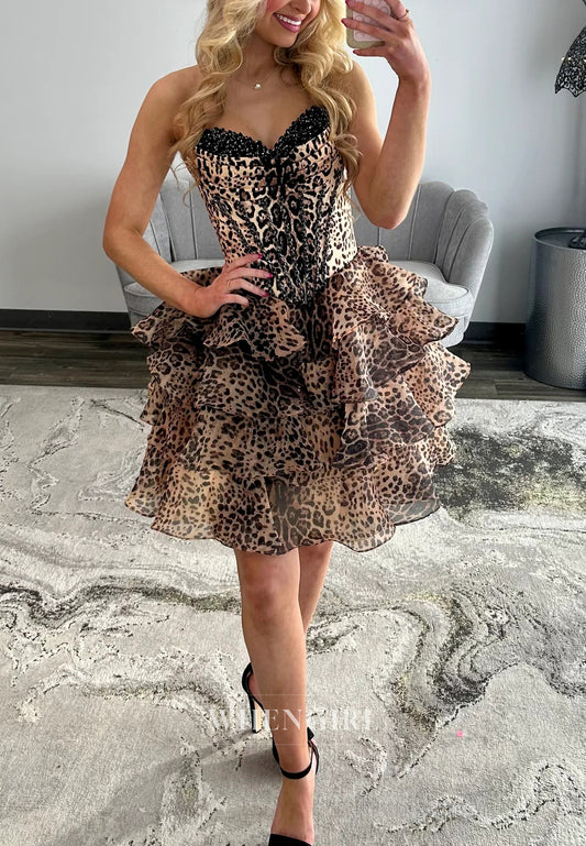 A-Line Multi Tiered Ruffles Sweetheart Sleeveless Short Homecoming Dress