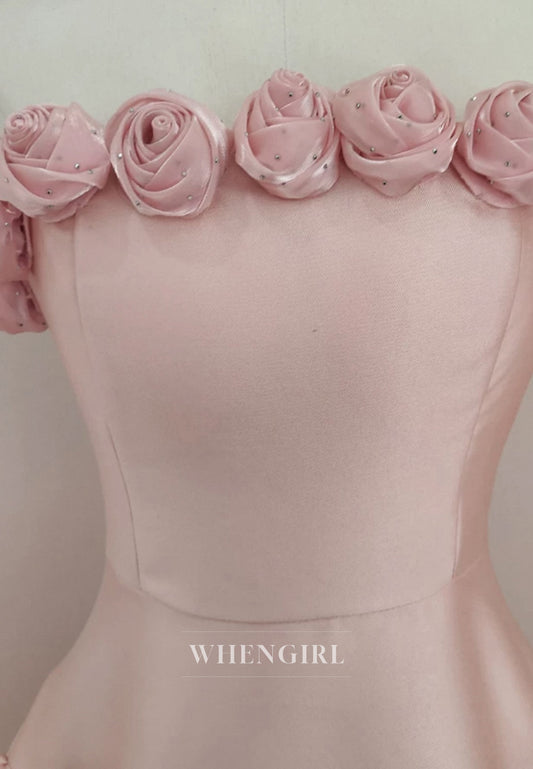 Blush 3D Flowers Tube Top Strapless Back Zipper A-Line Short Homecoming Dress