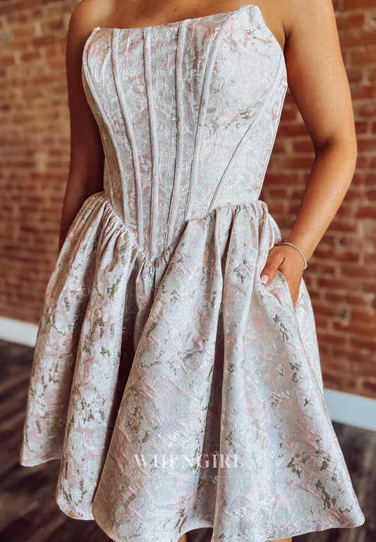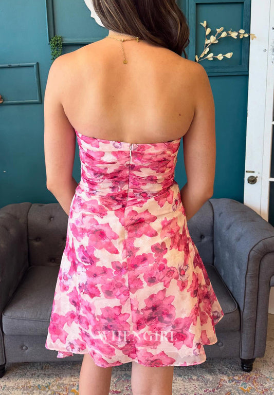A-Line Sleeveless Floral Strapless Back Zipper Short Homecoming Dress