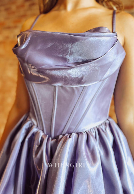Violet A-Line Pleated Spaghetti Straps Sleeveless Lace Up Short Homecoming Dress
