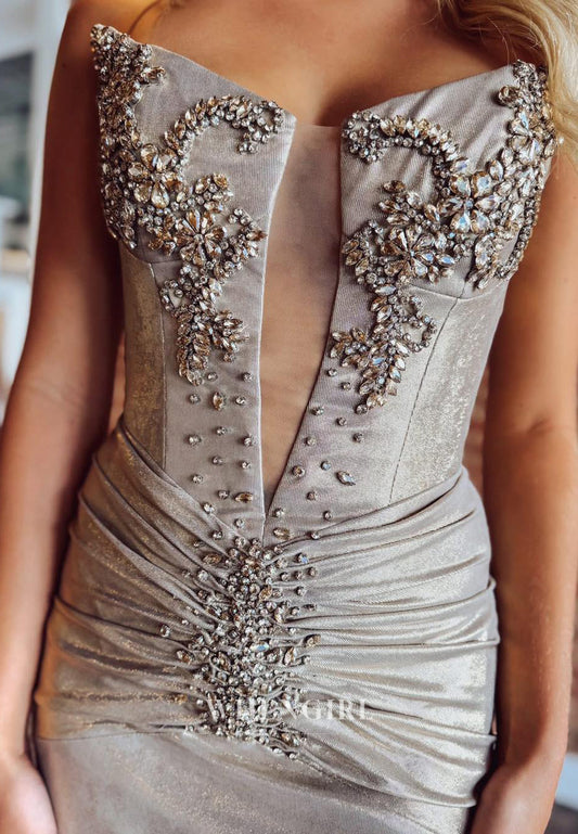 Champagne Sheath Beaded Strapless Back Zipper Short Homecoming Dress