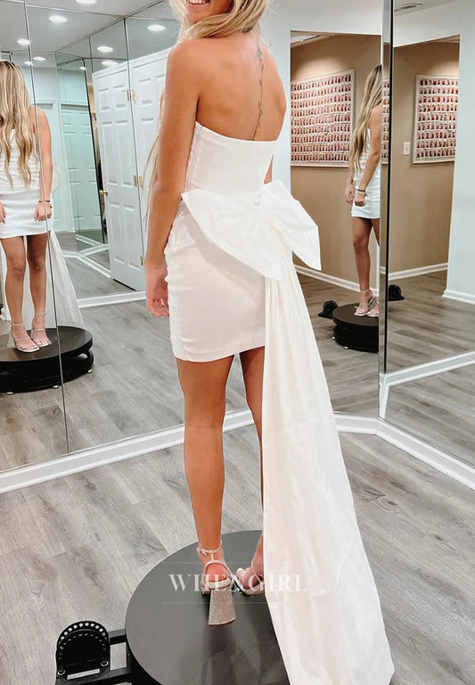 Sheath Tube Top Sleeveless Pleated Back Zipper Bowknot Train Short Homecoming Dress
