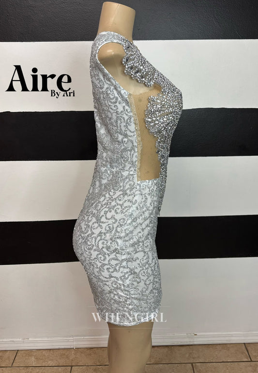 Silver Beaded Bateau Neck Sleeveless Back Zipper Sheath Short Homecoming Dress