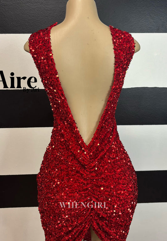 Sparkly Sequins Spaghetti Straps Sleeveless Sheath Short Homecoming Dress