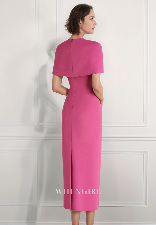 Unique Bateau Column Cocktail Dress Pink Elegant Mother of the Bride Dress with Shawl