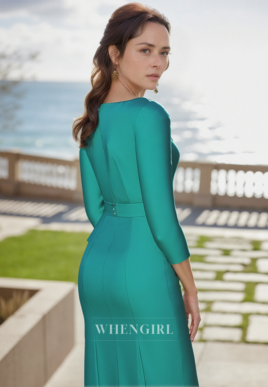 Unique Square 3/4 Sleeves Mermaid Elegant Mother of the Bride Dress