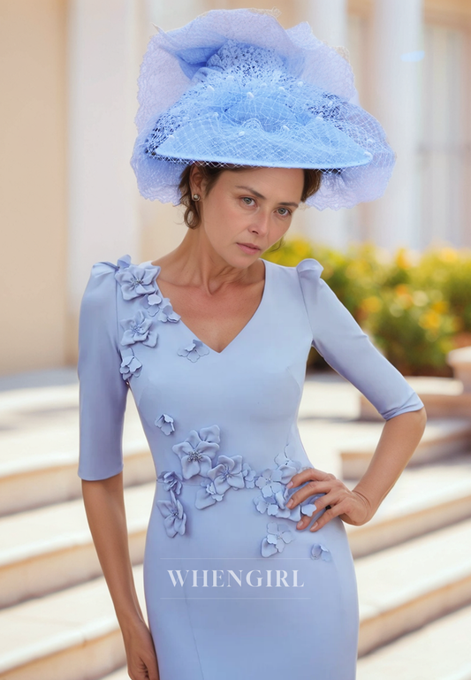 Sheath V Neck 3/4 Sleeves Short Mother of the Bride Dress Elegant Cocktail Dress