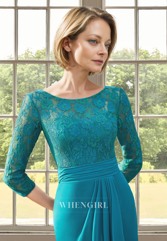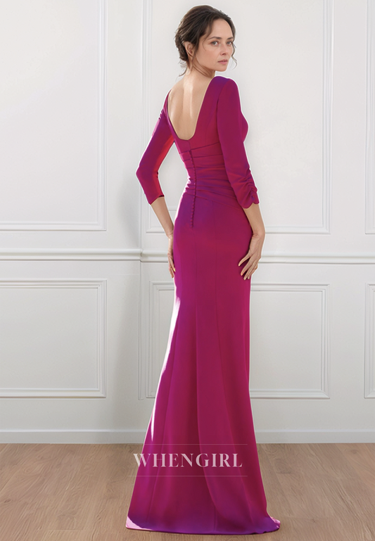 Sheath Bateau 3/4 Sleeves Split Elegant Long Mother of the Bride Dress