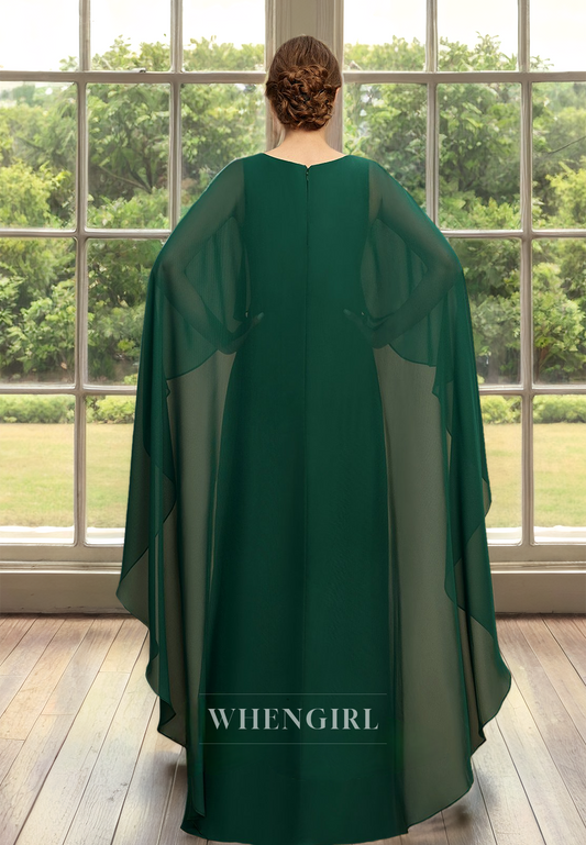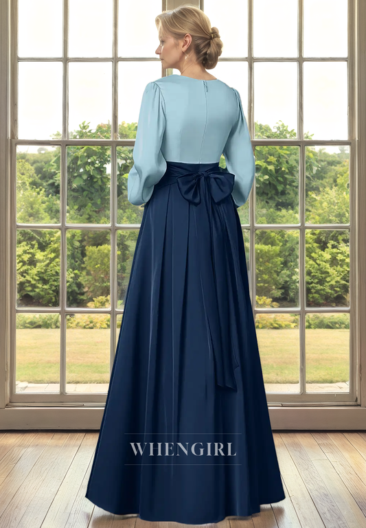 Scoop Neck Long Sleeves Ankle-Length Sheath Satin Mother of Bride Dress with Bow Cocktail Gowns