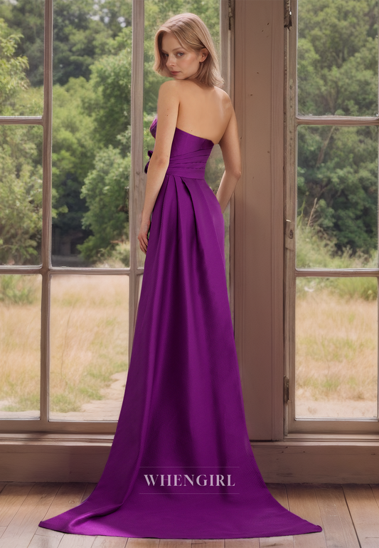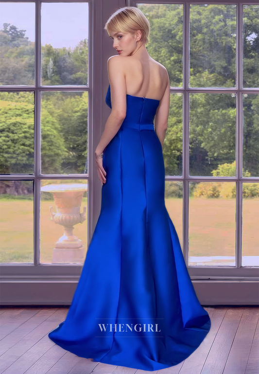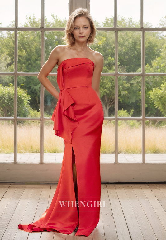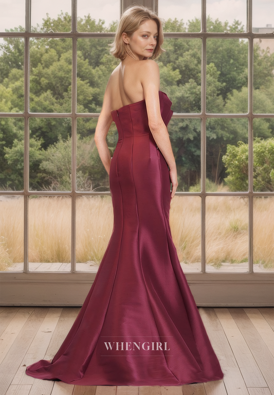 Casual&Simple Tube Top Sleeveless Mermaid Train Satin Mother of Bride Dress with Slit Cocktail Dress