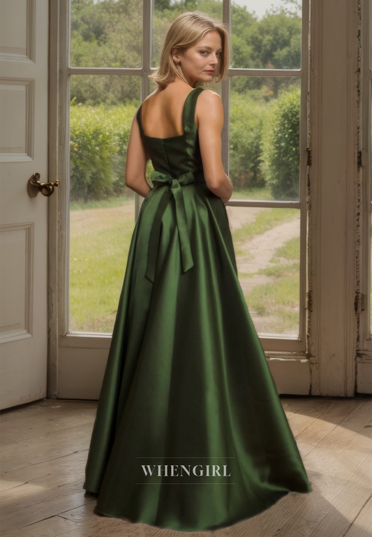Simple & Casual Square Neck A-Line Spaghetti Straps Sweep Train Satin Cocktail Dress Mother of the Bride Dress