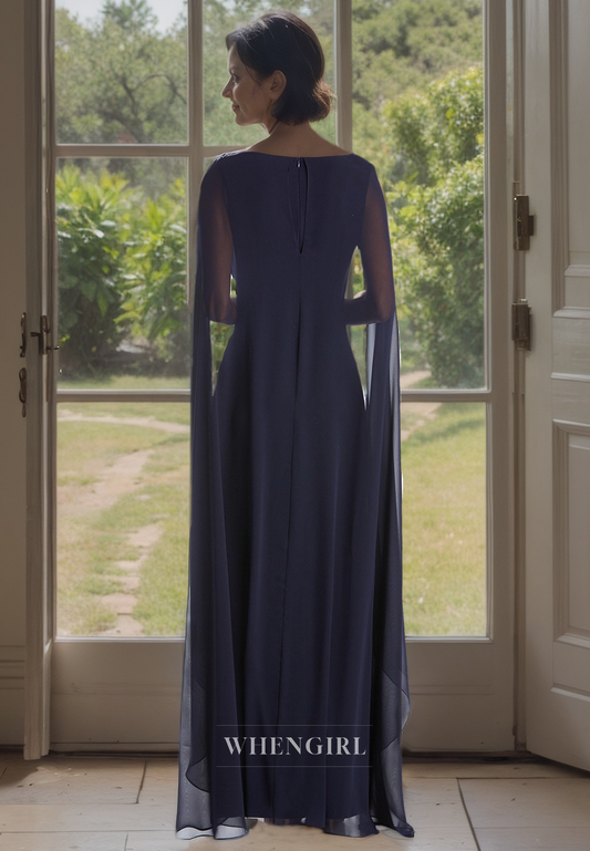 Scoop Neck A-Line Long Sleeves Pleats Chiffon Cocktail Dress with Appliques Mother of Groom