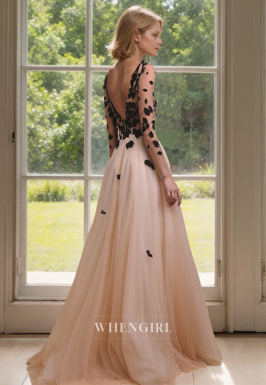 A-Line V-Neck Long Sleeves Train Pleats Lace Cocktail Dress with Appliques Mother of Bride Dress