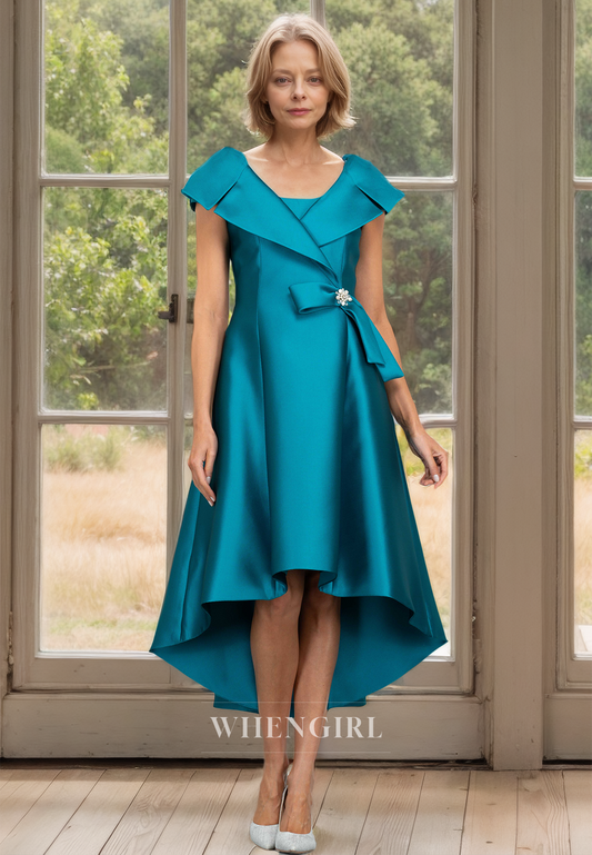 A-Line Collared Scoop-Neck Sleeveless High Low Cocktail Dress with BeadsMother of Bride Dress