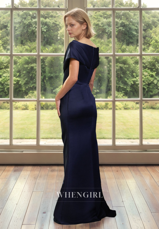 Asymmetrical One Shoulder Mermaid Floor-Length Satin Mother of Bride Dress Cocktail Dress