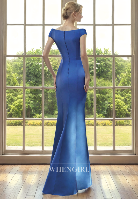 Mermaid Off Shulder Half Sleeves Pleated Back Zipper Mother of Bride Dress