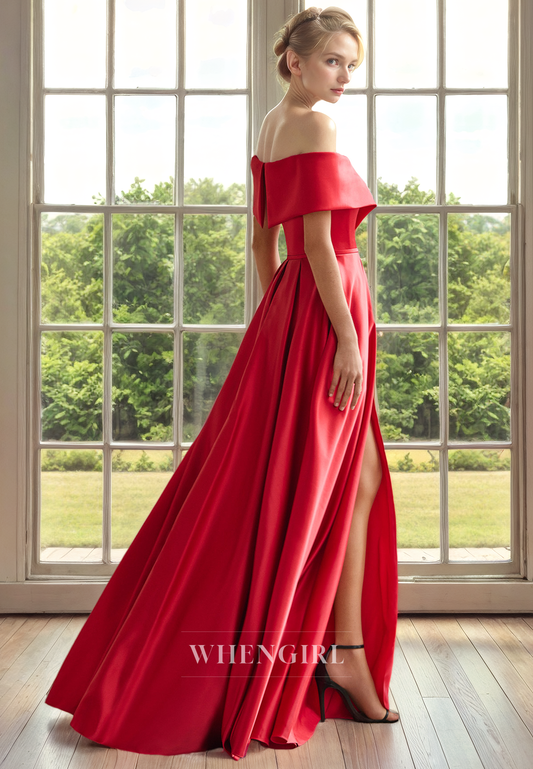 A-Line Off Shoulder Sleeveless Pleated Mother of Bride Dress with Slit