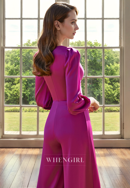 Jumpsuit A-Line V Neck 34 Length Sleeves Pleated Back Zipper Mother of Bride Dress