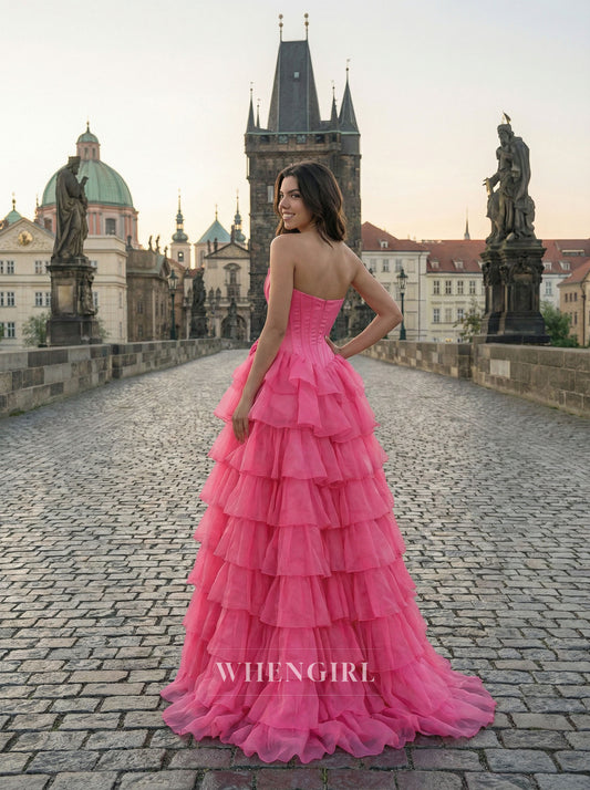 A-Line Multi Tiered Ruffles A-Line Prom Dress