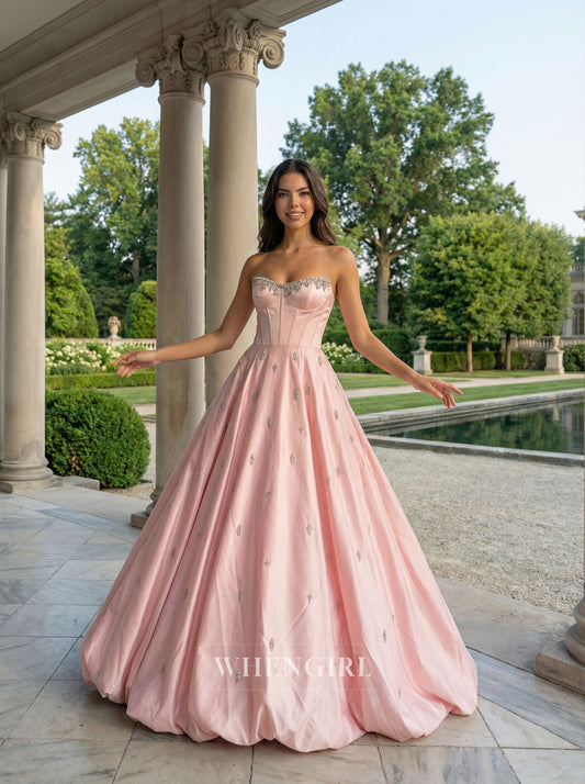 Pink Beaded Neckline A-Line Bubble Hem Prom Dress