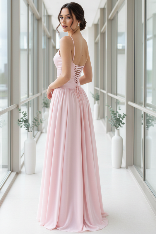 Pretty A Line Spaghetti Straps Pink Corset Lace Up Prom Dress